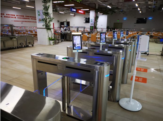 3) 人员到达出入口通道闸刷卡或人脸识别进行通行,如使用带人脸测温终端需要人脸识别+体温验证正常方可打开通道闸,终端认证成功后会输出信号到通道闸进行打开。