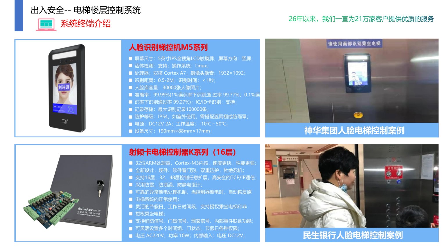 依时利企业/校园电梯楼层控制系统是通过统一管理平台/数据库/终端/手机端来实现综合管理,对电梯在不同楼层的运行进行控制过程,提高电梯的运输效率和安全性。合理地分配和乘坐电梯,有效地阻止不必要的电梯运行能耗,提高运行效率和楼层管控。电梯楼层控制系统可以授权用户通过刷卡、扫码、刷脸识别认证等方式进入指定的楼层,防止外来人员随意进出乘坐电梯,保障企业/校园乘梯的安全和隐私。