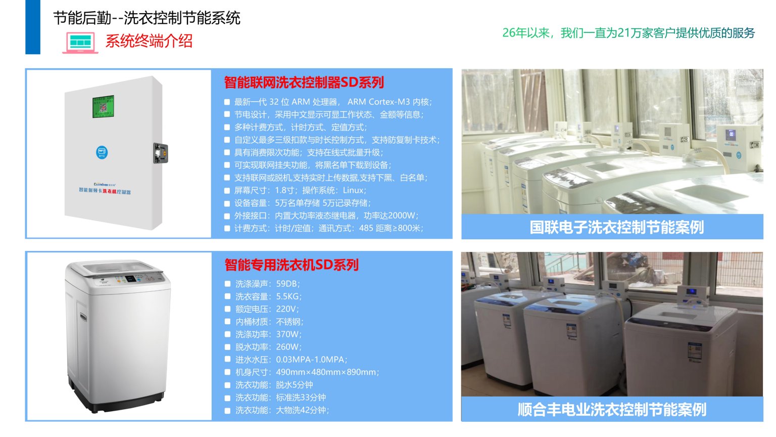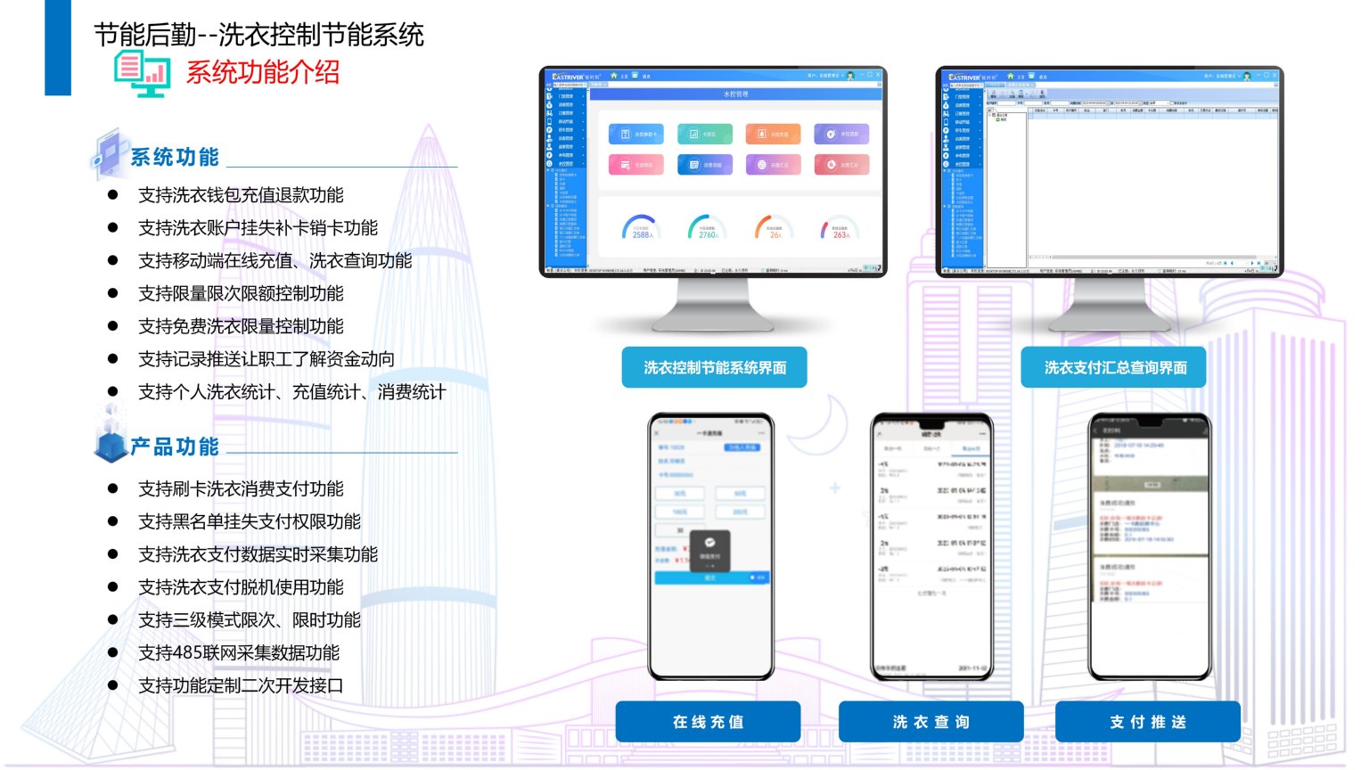 依时利企业/校园洗衣控制节能系统是通过统一管理平台/数据库/终端/手机端来实现综合管理,主要实现为企业/校园宿舍职工提供便利的服务项目,洗衣服务比手洗节省30%-50%的用水量,同时可让职工专注工作, 从容安排时间,系统是一种可以对洗衣机的使用进行控制、计费和管理的系统,由智能IC卡、洗衣机控制器、网络通讯模块和后台管理软件等组成。通过刷卡、扫码等方式启动洗衣机,企业/校园卡钱包支付后提供脱水、标准洗、大物洗三种模式选择,为企业/校园提供节省、智能、人性化的服务项目,方便职工使用,节省人力成本,提高收入效率。