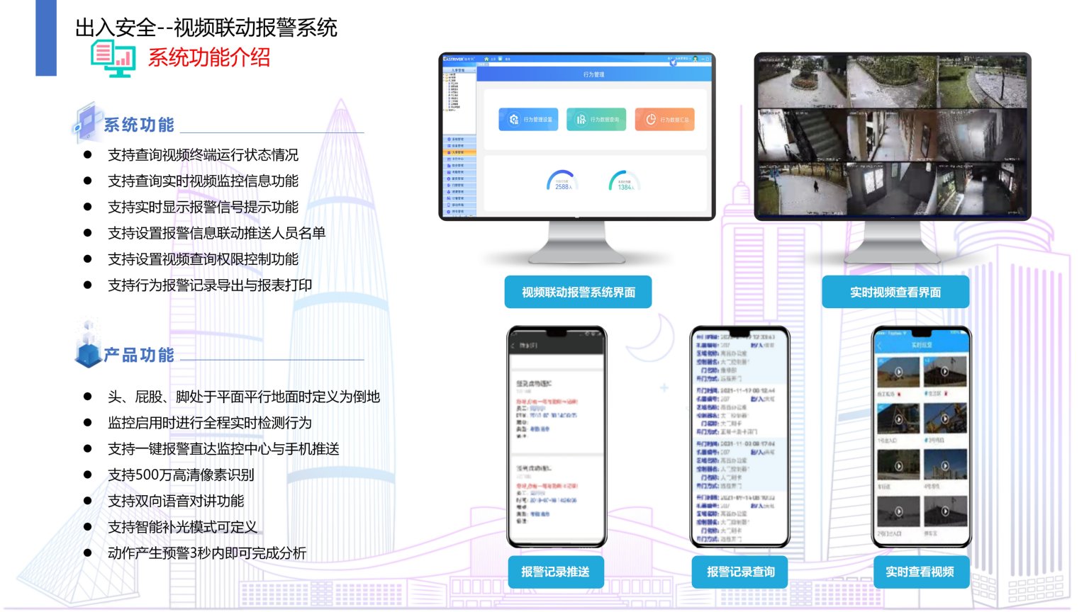 依时利企业/校园视频联动报警系统是通过统一管理平台/数据库/终端/手机端来实现综合管理,可以在发生报警事件时,自动调用相关的摄像机进行视频捕捉和显示,可以自动或手动触发报警设备,同时将相关的音视频信息传送到监控中心,以便及时处理和处置。视频联动报警系统可以实现对重点区域和时段的精准监控和预警,减少漏报和误报的可能性,提高安全防范效果。可以将音视频进行存储和回放,便于事后追查取证,设置合理的联动策略和响应方式,实现企业/校园智能化安全管理。